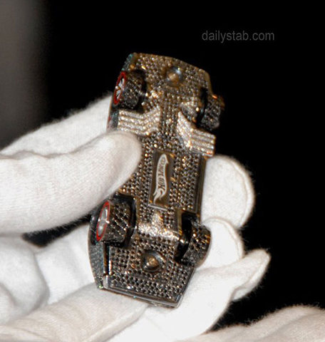 Simple, el coche tiene 2,700 diamantes color negro, azul y blanco. Los diamantes de color azul se utilizan para imitar a los Hot Wheels Spectraframe, el color azul de la pintura, mientras que los diamantes negros y blancos están bajo la cubierta del motor. Y Por si fuera poco el freno de luces se utilizan Rubies!!...vaya!! vaya!!